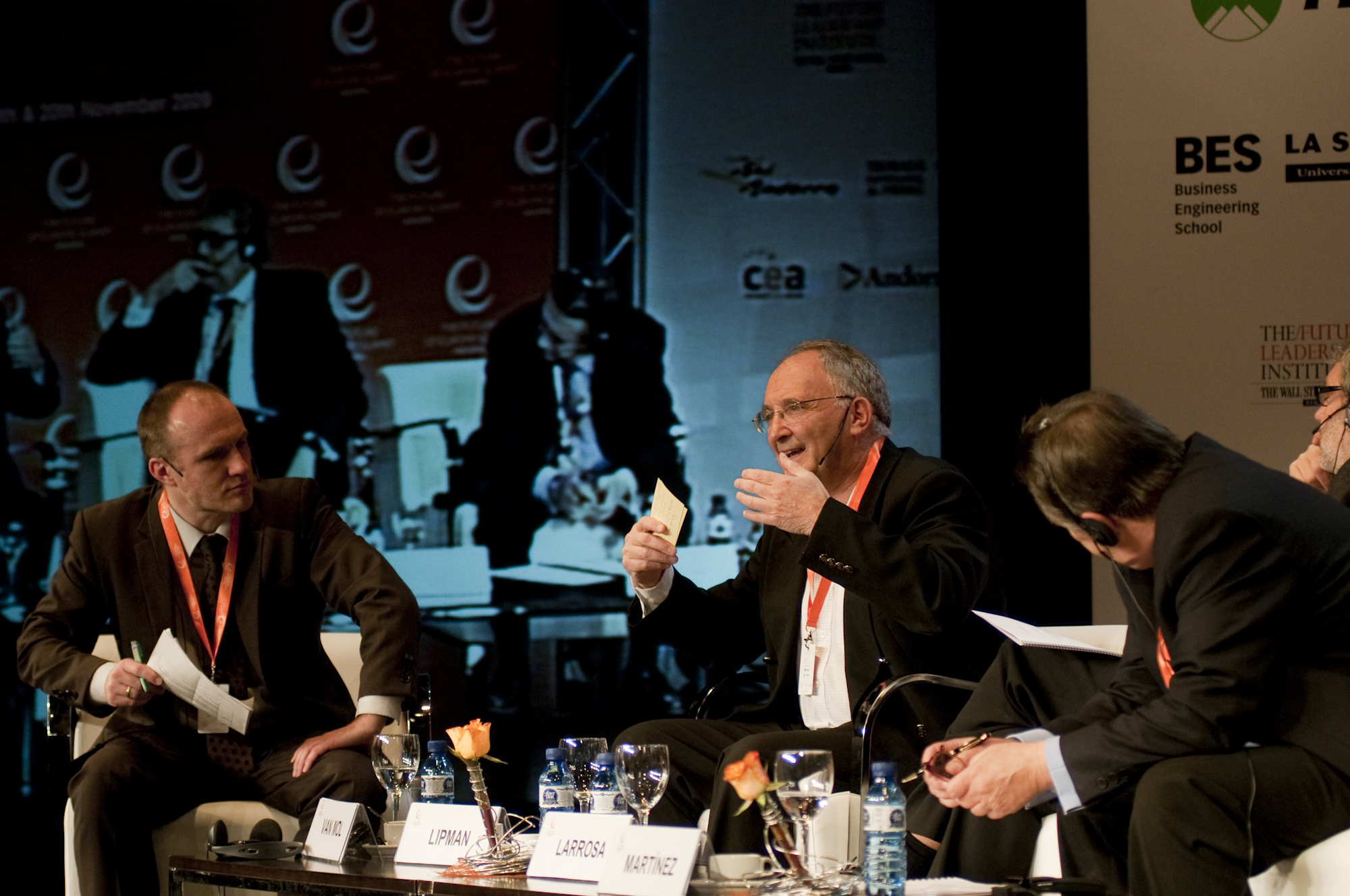 | Soumitra Dutta, Dean, External Relations, INSEAD, France Klaus Hieronymi, Chairman of the Environmental Board, HP EMEA Salvador Roca, Vice-Chairman, Ros Roca Group, Spain Mark Spelman, Global Head of Strategy, Accenture Barend van Bergen, Director KPMG Sustainability, Netherlands Chaired by: Nik Gowing, Main Presenter, BBC | ||