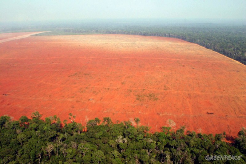 Illegal deforestation for soy production, in the North of State of Mato Grosso. An area equivalent to about six football fields a minute are destroyed.