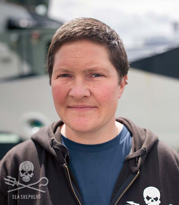 Scientist and Medical Officer, Colette Harmsen, on board the Sam Simon.