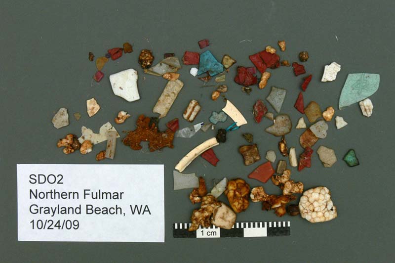 Plastic retrieved from the stomach of a single Northern Hemisphere seabird (petrel); 1cm equals 0.4 inches