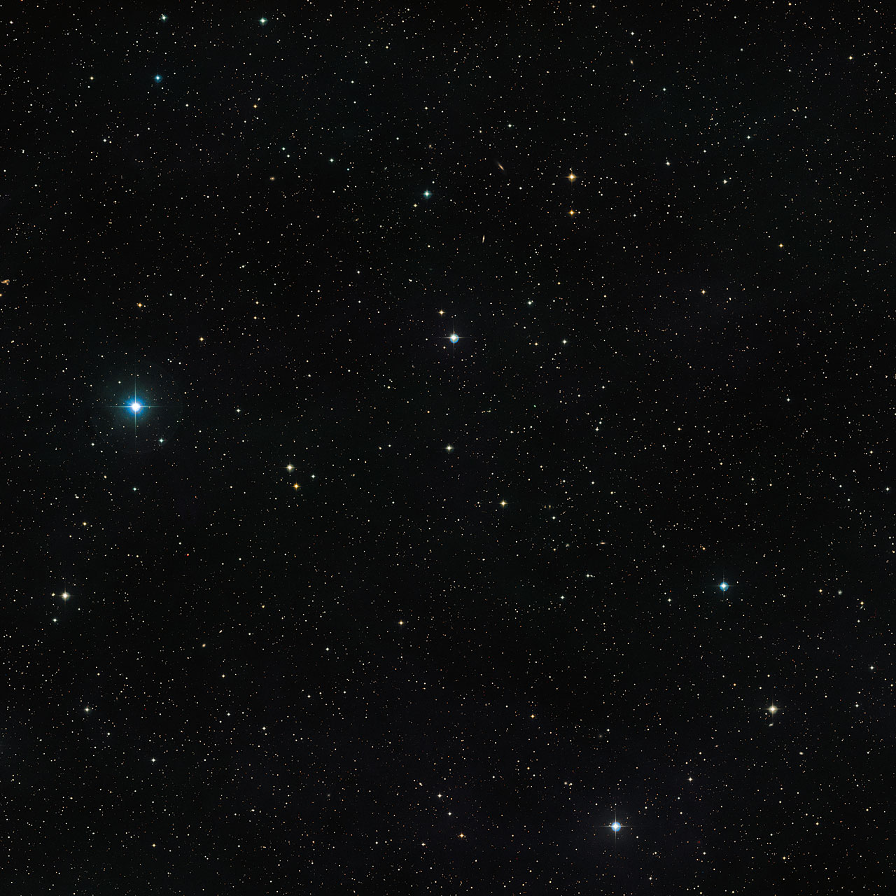 This picture shows the sky around the unusual double star V471 Tauri. The object itself is visible as an unremarkable looking star of moderate brightness at the centre of the image. This picture was created from images in the Digitized Sky Survey 2. Source: ESO