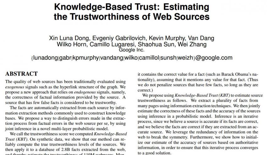 More information: Knowledge-Based Trust: Estimating the Trustworthiness of Web Sources, arXiv:1502.03519 [cs.DB] arxiv.org/abs/1502.03519v1