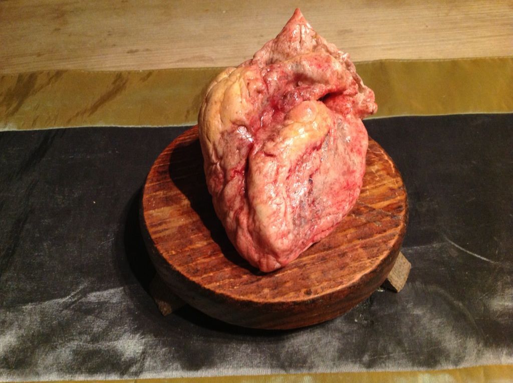 The purple heart of ecstasy, a wax heart sculpture of a victim of drugs, by Pascale Pollier, Artem Medicalis. It is in the private collection of the Morbid Anatomy museum , New York City.