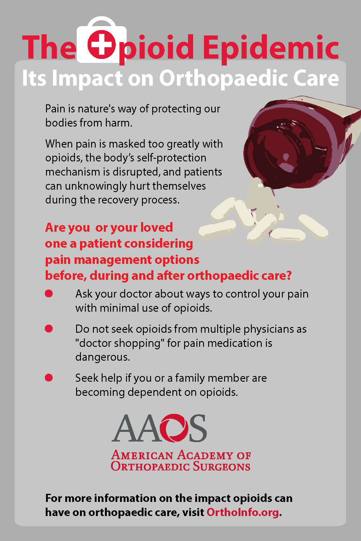 “Orthopaedic patients can experience a tremendous amount of pain with acute injuries and chronic conditions, and the treatment plan may involve opioid prescriptions for relief of discomfort,” says Dr. Mir. “A significant number of orthopaedic patients and their families are at risk for repercussions from opioid use. We must work together with all prescribers and patients to decrease the use of opioids for musculoskeletal pain.”