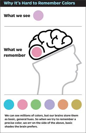 Though people can distinguish among millions of colors, we have trouble remembering specific shades because our brains tend to store what we’ve seen as one of just a few basic hues, a Johns Hopkins University-led team discovered.