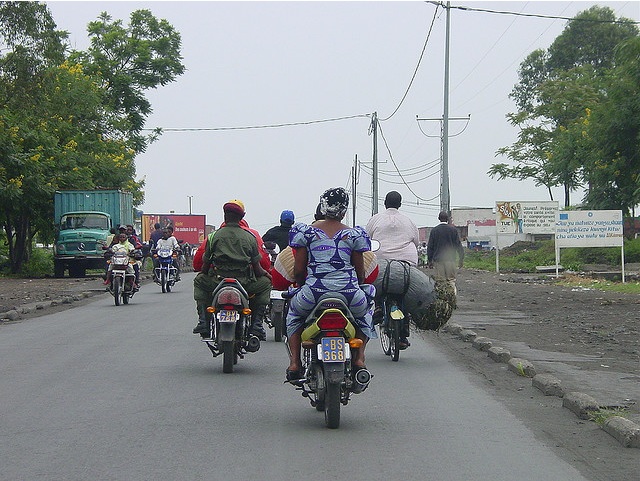 14:39 It still rains, and it looks like it will be raining for quite a while. In Butembo, the only official taxis are motto taxis. I notice a small Toyota on the road with a mama. I wave her down. She stops and accepts to bring us to l’Auberge for 5$. We arrive in l’Auberge and we eat a “soup de potage” or a vegetable soup. After a while, the other group arrives.