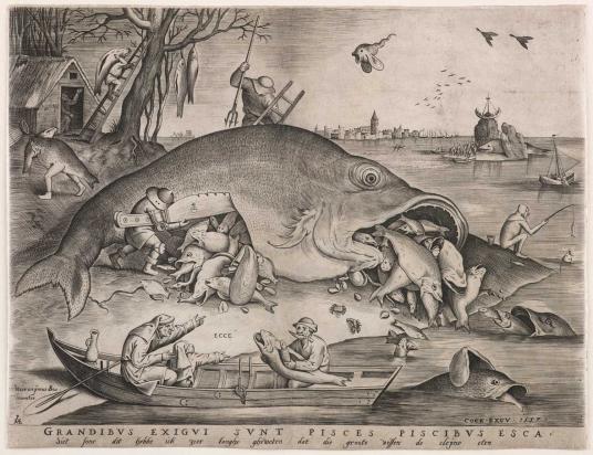 Pieter van der Heyden, after Pieter Bruegel the Elder, Big Fish Eat Little Fish, 1557. Engraving. Private collection.