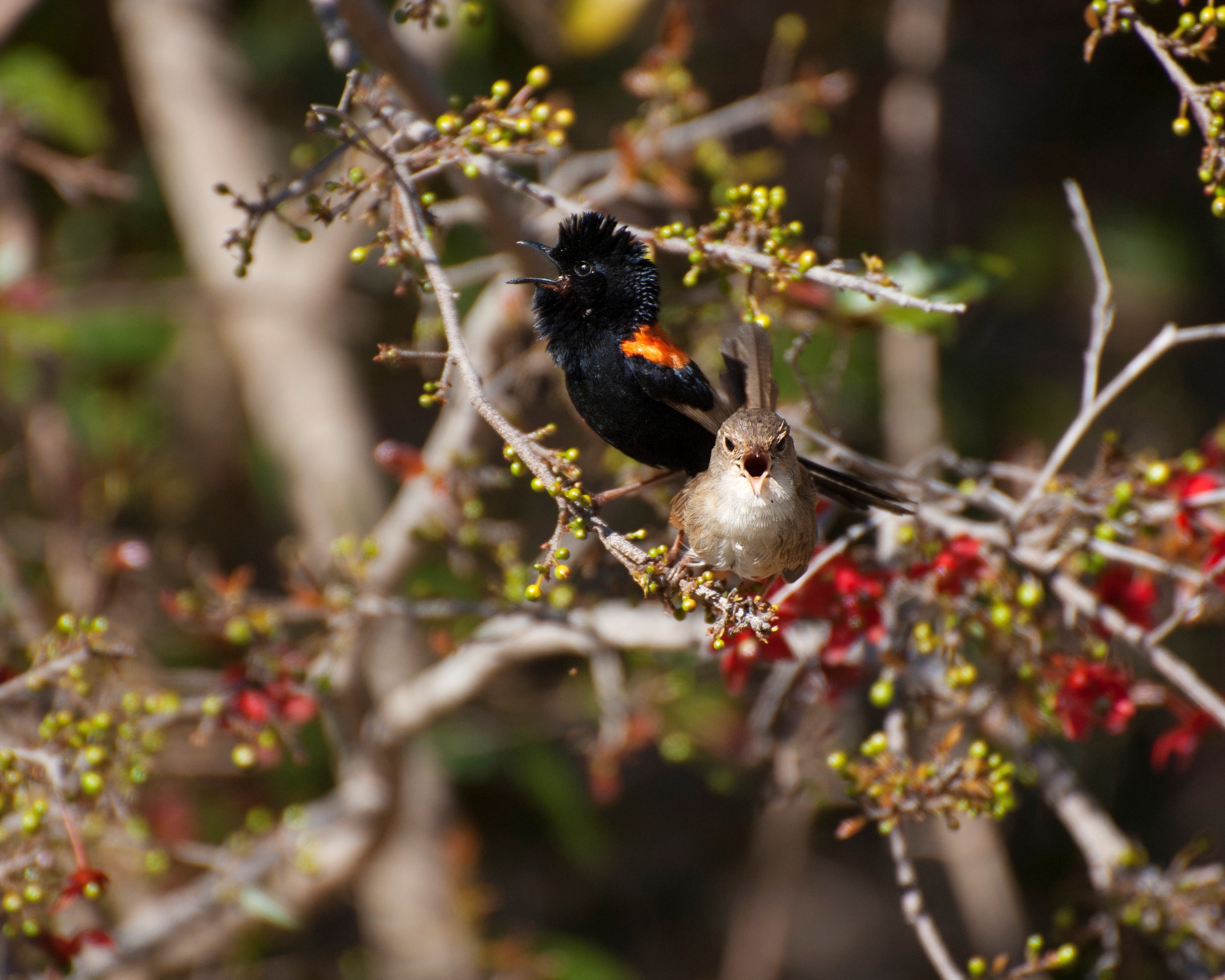 The courtship and mating behaviors of the perky Australian red-backed fairy-wren have evolved into nothing short of a free-for-all. The rampant promiscuity of both sexes is legendary.
