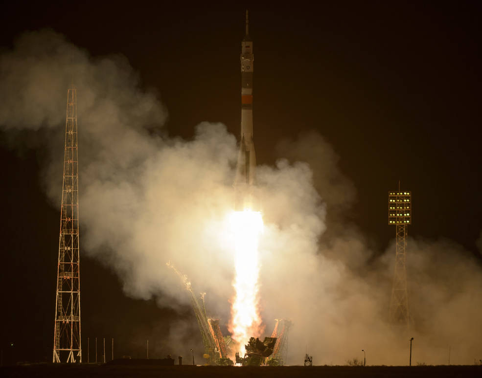 The Soyuz MS-03 spacecraft launches from the Baikonur Cosmodrome with Expedition 50 crewmembers NASA astronaut Peggy Whitson, Russian cosmonaut Oleg Novitskiy of Roscosmos, and ESA astronaut Thomas Pesquet from the Baikonur Cosmodrome in Kazakhstan, Friday, Nov. 18, 2016, (Kazakh time) (Nov 17 Eastern time). Whitson, Novitskiy, and Pesquet will spend approximately six months on the orbital complex. Photo Credit: (NASA/Bill Ingalls)