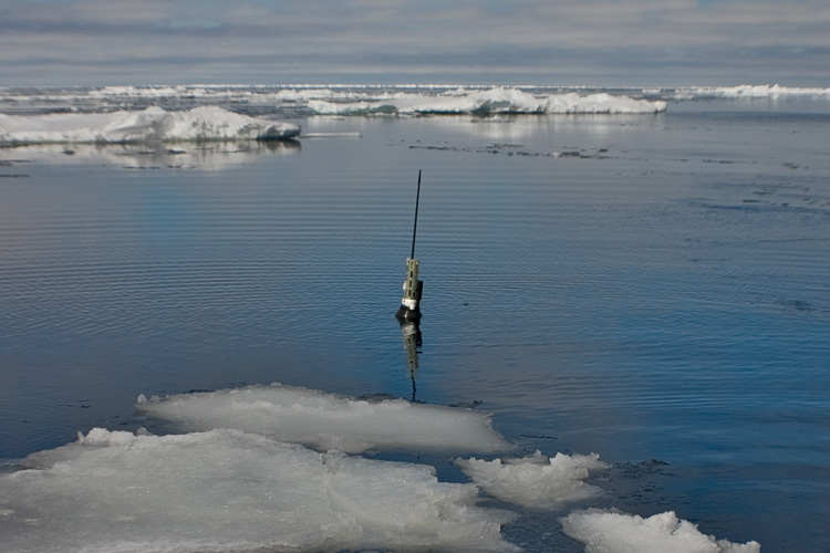 A NEMO float, part of the global Argo array of ocean sensing stations, deployed in the Arctic from the German icebreaker Polarstern Bremerhaven. (Photo courtesy of Argo)
