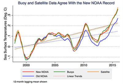 Hausfather and colleague Kevin Cowtan of the University of York in the UK extended that study to include the newer satellite and Argo float data in addition to the buoy data.