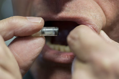 The MucoJet technology holds promise for more effective oral vaccine delivery. (UC Berkeley photo by Stephen McNally)