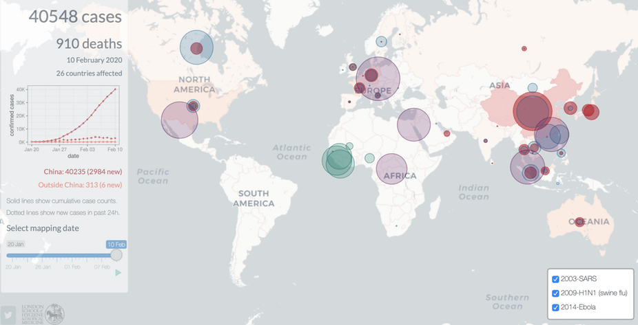 We have been trying to keep up with the novel coronavirus ever since. Each day, we are faced with worrying headlines reporting the latest twists and turns of this outbreak. We have seen the virus spill over China’s borders and spread to at least 25 countries worldwide, and watched with mounting anxiety as the number of cases creeps ever higher. We wait apprehensively to see where the virus shows up next.